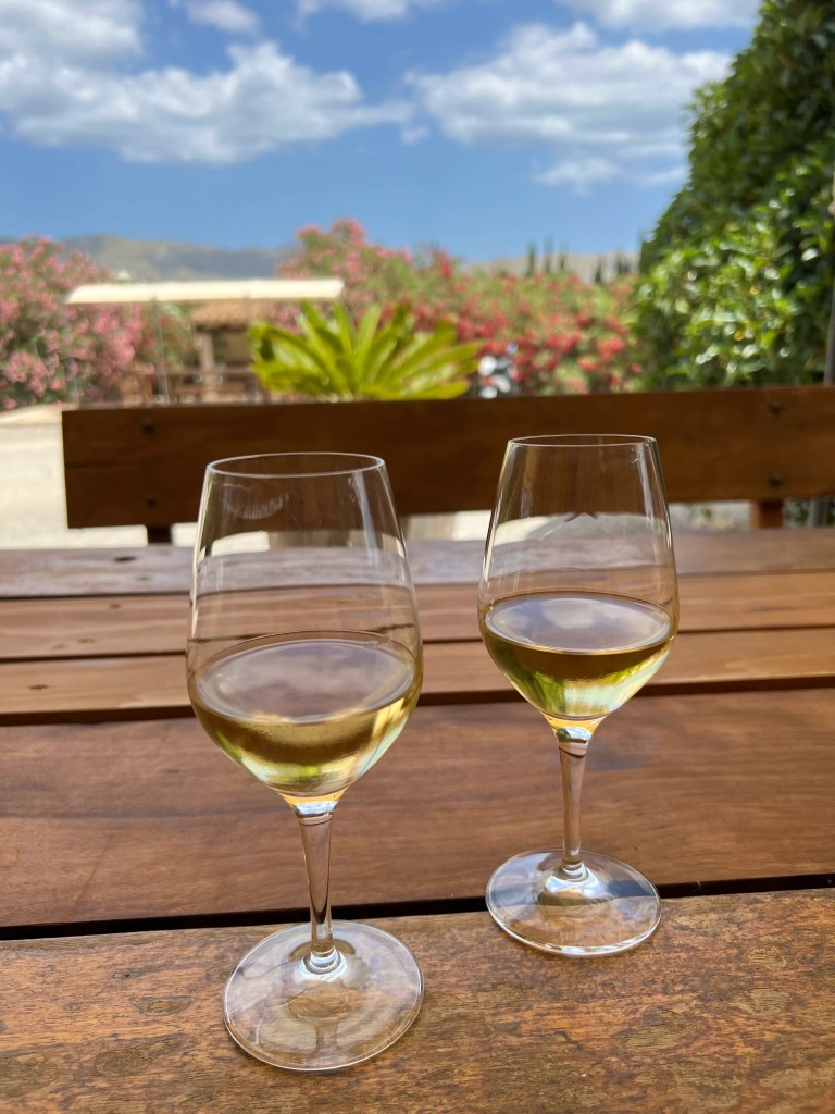 Yli tunnin kestävän kierroksen jälkeen siirryimme odotetulle viininmaistelulle terassille. Herkulliset tapakset täydensivät neljän artesaaniviinin ja ginin maistelua. Maistelun päätteeksi mukaamme tarttui vielä yksi pullo valkoviiniä matkamuistoksi.