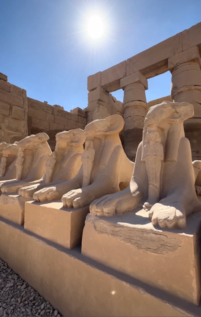 Vierailu Karnakin temppelissä oli mielestäni koko Luxorin kohokohta! Yritä ajoittaa vierailusi aikaisin aamuun ennen turistimassan saapumista. Temppelissä vierähtää helposti pari tuntia ellei enemmän, joten aikaa kannattaa varata täällä vierailuun!