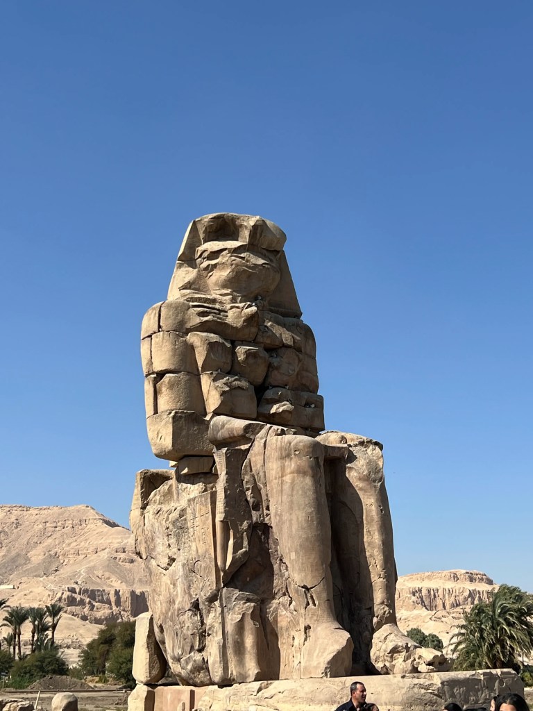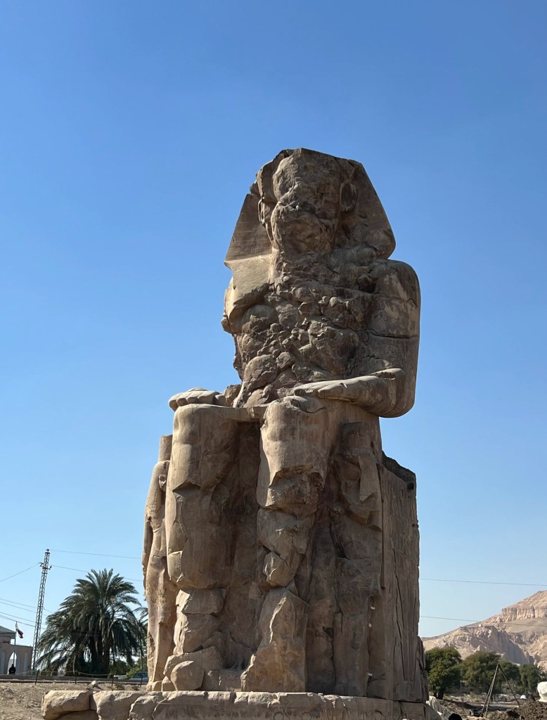 Faarao Amenhotep III:n kaksi suurta kivipatsasta seisoo hänen tuhoutuneen temppelin edessä. Temppelistä on jäljellä enää niin vähän, että nopealla vilkaisulla ei jäännöksiä välttämättä edes huomaisi. Patsaat on tehty kvartsiittihiekkakivilohkoista. Memnonin kolossit sijaitsevat Luxorin läntisessä osassa.