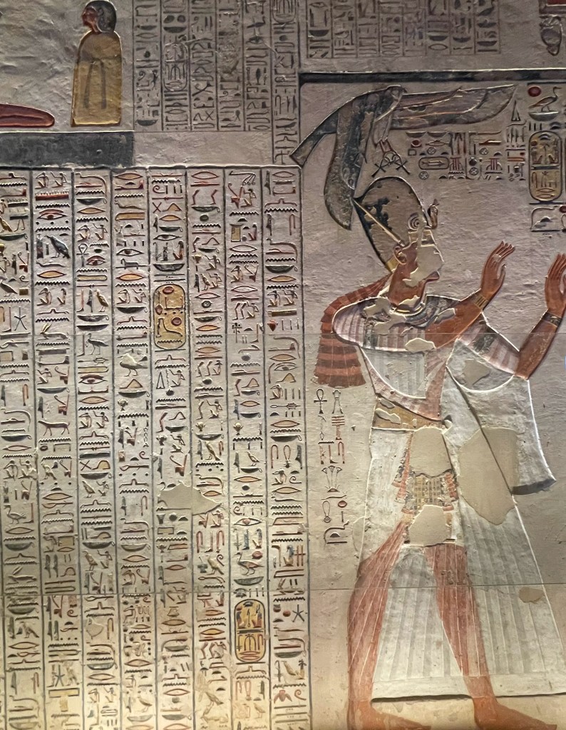 Kuninkaiden laaksoa ympäröi upea vuoristonäkymä ja hiljaisuus. Laakson kaiverrukset ja maalaukset kertovat tarinoita faaraoiden valtakaudesta, heidän uskonnollisista rituaaleistaan ja heidän valmistautumisestaan elämään tuonpuoleisessa. Kuninkaiden laaksosta löytyy esimerkiksi Tutankhamonin ja Ramses II:n hautakammiot. Kävimme myös katsomassa Ramses II muumiota Kairon egyptiläisessä museossa, voit lukea siitä lisää täältä.