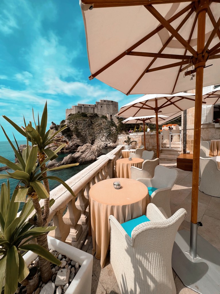 Kävellessä vanhan kaupungin pieniä kujia saattaa törmätä tähän upeaan kalliobaariin. Muurin seinässä olevasta aukosta avautuu ihana merinäkymä ja kävimme kurkkaamassa sitä tarkemmin – aukon takana sijaitseekin merinäköalalla varustettu baari, jossa voit hetkeksi pysähtyä nauttimaan drinkit samalla kun ihailet kristallinkirkasta Adrianmerta ja Lokrumin saarta.