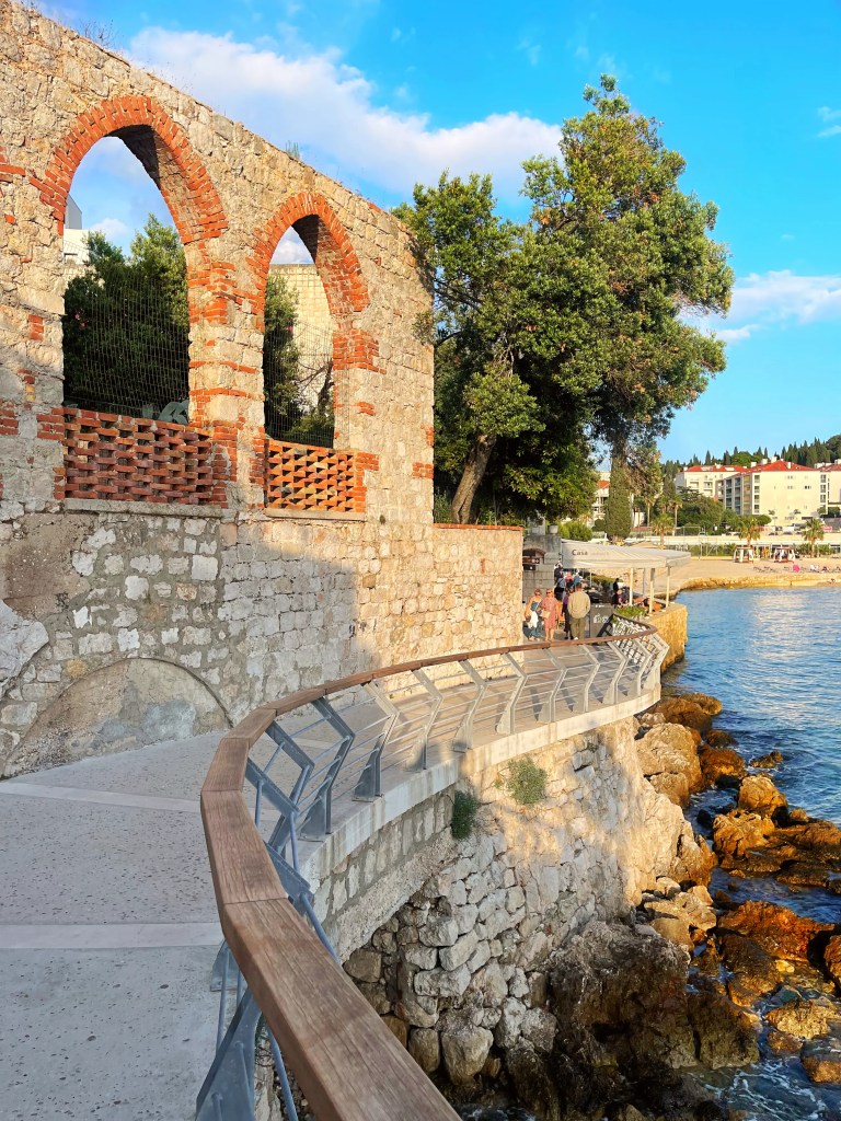 Jos majoitut vanhassa kaupungissa, suosittelen vierailemaan myös viehättävässä Lapadissa, joka sijaitsee noin 30 minuutin bussimatkan päässä vanhasta kaupungista. Lapadista löytyy monta kivirantaa ja toistaan upeampia uimapoukamia! Useimmilta rannoilta löytyy mahdollisuus vuokrata aurinkotuoleja, jos makoilu kivikkoisella rannalla tai kallion päällä ei houkuta. Lapadin rantapromenadilta löytyy myös ihania terasseja, joissa syödä tai nauttia coctaileja! Paikallisbussit liikennöivät tiheään ja matka vanhasta kaupungista Lapadiin maksaa 2€ bussista suoraa ostettuna. Vaihtoehtoisesti voit ostaa halvemman lipun Tisak-kioskista, joka sijaitsee aivan vanhan kaupungin muurien ulkopuolella, josta bussit lähtevät.
