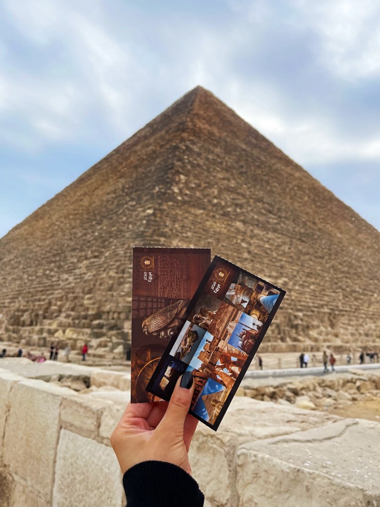 Giza sijaitsee noin 15 kilometrin päässä Kairon keskustasta. Sisäänpääsy pyramideille maksaa 160EGP. Myös pyramidien sisällä on mahdollista vierailla erillisestä lisämaksusta. Kheopsin pyramidin sisäänpääsymaksu on 360EGP sekä 100EGP lisää, jos haluat vierailla myös kahdessa muussa pyramidissa. Sisältä pyramidit eivät ole yhtä vaikuttavia kuten esimerkiksi Kuninkaiden Laakson haudat. Jyrkkä, kivinen ja ahdas käytävä johtaa tyhjään huoneeseen, jossa ei ole nähtävillä värikkäitä maalauksia tai hieroglyfejä. Vierailu pyramideilla kannattaa ajoittaa aamuun, jolloin ei ole vielä liian kuuma eikä isoimmat turistimassat ole liikkeellä.