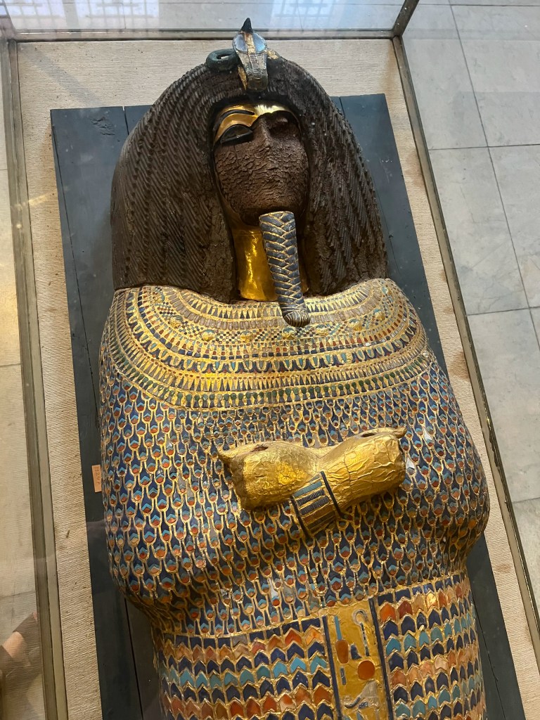 Päiväretki päättyi vierailuun Kairon keskustassa sijaitsevaan Egyptin museoon, joka on yksi maailman suurimmista ja tärkeimmistä Egyptin antiikin aarteiden kokoelmista. Museon kokoelma kattaa laajan valikoiman esineitä muinaisen Egyptin eri aikakausilta, mukaan lukien faaraoiden hautaesineistöä, patsaita, sarkofageja, muumioita, koruja ja papyruskääröjä. Yksi museon kohokohdista on legendaarisen faaraon Tutankhamonin hautalöydöt, mukaan lukien hänen kuuluisa kultainen naamionsa. Kultaista naamiota ei valitettavasti saanut kuvata.