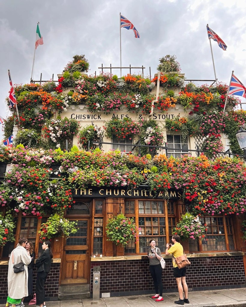 The Churchill Arms Pub on Kensingtonissa sijaitseva kukilla koristeltu pubi. Päätimme kokeilla paikallista olutta, vaikka täytyy myöntää, että olut ei edelleenkään vakuuttanut minua, ja taidan jatkossakin suosia vain viinejä! Pubi oli erittäin suosittu, ja istumapaikan löytäminen oli haastavaa. Juomapuolen lisäksi paikasta saa tilattua thaimaalaista ruokaa, mikäli nälkä yllättää.