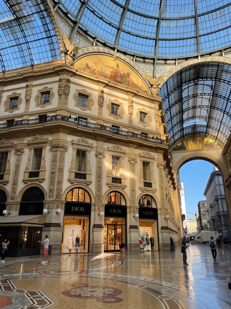 Tämä ylellinen ostoskeskus on yksi maailman vanhimmista ja se sijaitsee aivan Milanon ydinkeskustassa, Duomon katedraalin vieressä. Se on täynnä ylellisiä kauppoja ja kahviloita, sekä on jo itsessään loistokas nähtävyys, vaikka mitään ei edes ostaisi. Gallerian keskeltä lattialta löytyy mosaiikkikuva härästä, jonka ympärille kerääntyy etenkin päivisin paljon turisteja. Legendan mukaan asettamalla kantapääsi mosaiikissa sijaitsevaan kuoppaan ja pyörimällä ympäri kolmesti myötäpäivään, uskotaan tämän rituaalin tuovan hyvää onnea ja menestystä.