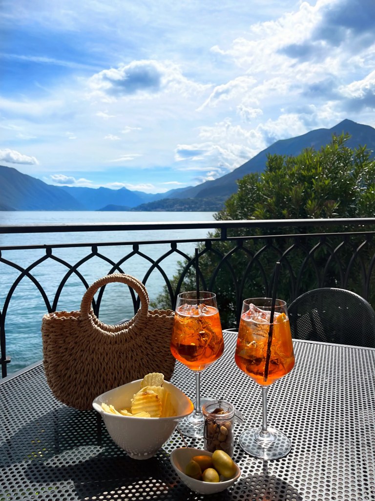 Grand Hotel Tremezzo tarjoaa kävijöilleen ylellistä palvelua ylelliseen hintaan. Täällä Aperol Spritz maksoi 25€ ja espresso 8€. Drinkkien hintaan sisältyi tyylikkäitä alkupaloja pähkinöiden ja sipsien kera, joten siihen nähden drinkkien hinta ei ollut niin överi.